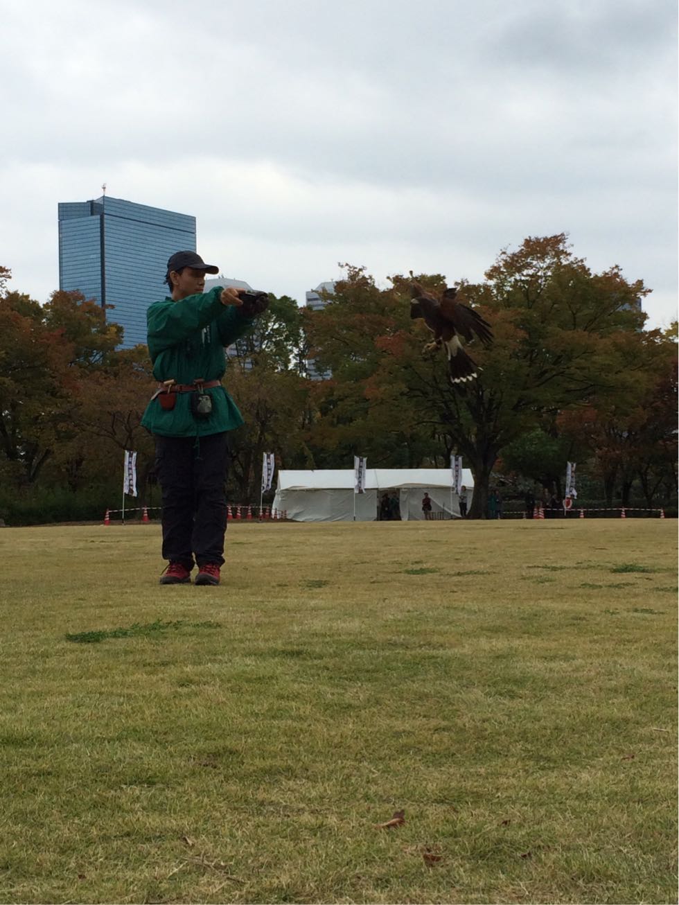 大阪城の西の丸公園で鷹匠による鷹術をみました。