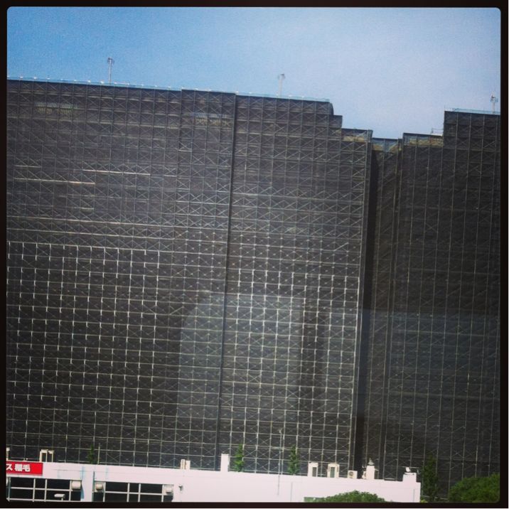 途中の景色。まるごとマンションを囲むなんてすごい。この中にたくさん人がいるなんて。