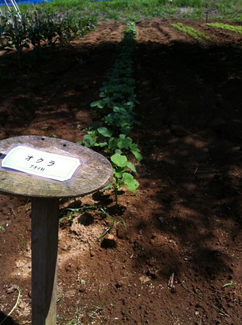 昨日、あちこちのみんなが「育たない」と言っていたオクラを発見。
