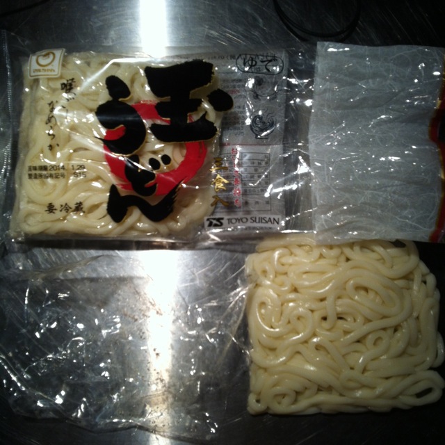 今は水道水を使わずに料理をすることをチャレンジしているのでこちらのゆでうどん。