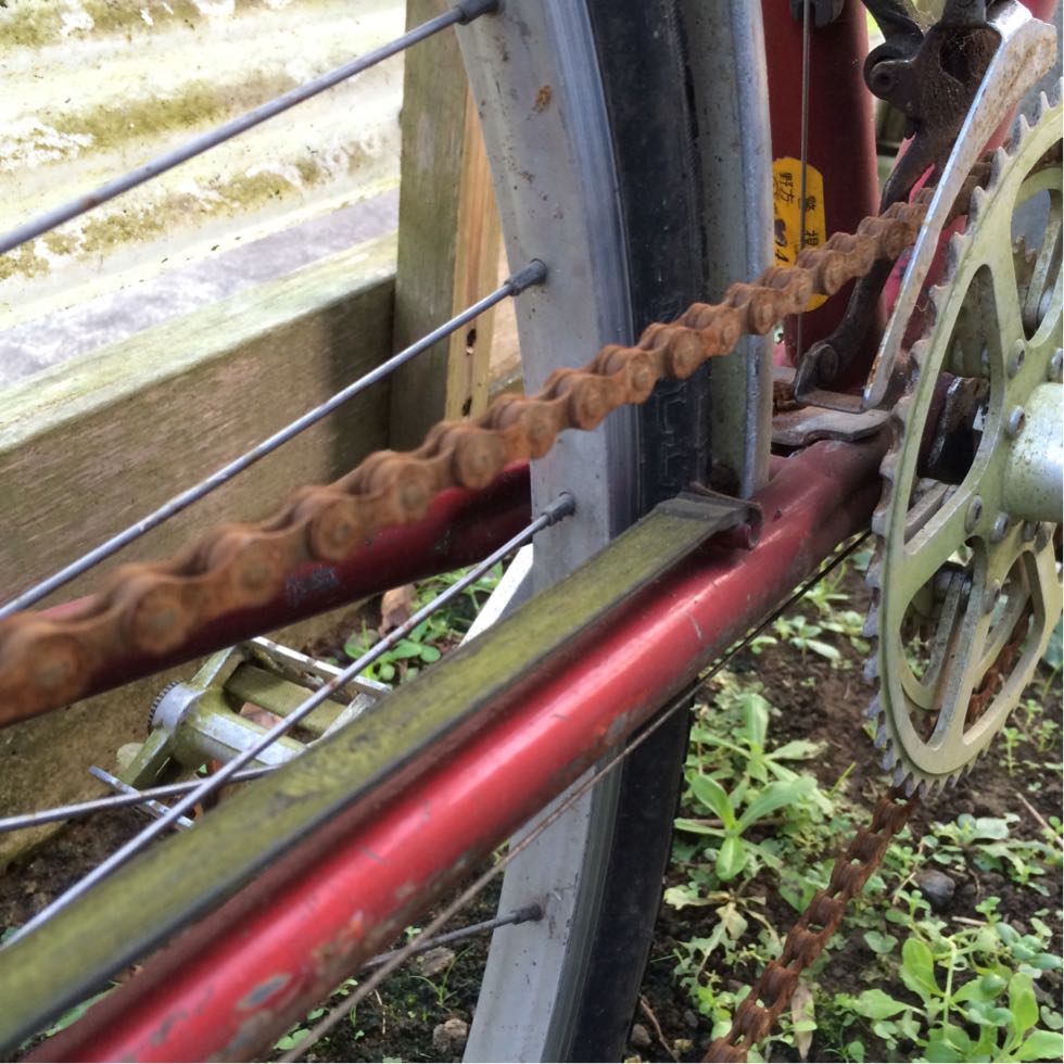 それで2年前に茂原のサイクルショップでワイヤー、チェーン、バーテープ、ブレーキシューすべてメンテナンスして整備したものの、怖くて乗れてなかった。カゴもないし。