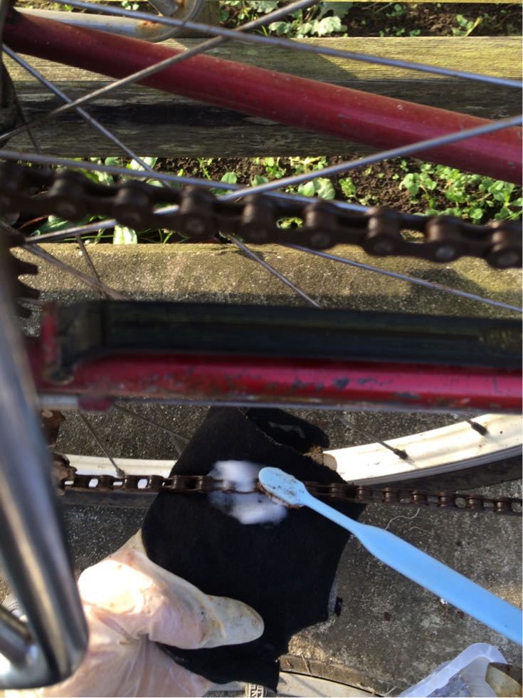 先ほどの毛先の短くなった歯ブラシはチェーンの中に歯が届かないので、表面だけだなあ、長いほうが良かったか…
