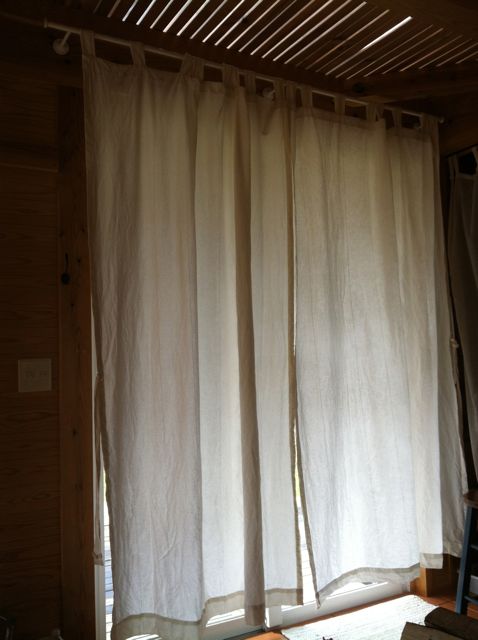 こちらは洗濯前の写真がなかったので、一昨日の写真。窓の両側にさがっているのがカーテン。水道水で洗っているのでどうかとは思うのだけれど洗いたかったので洗ってみた。
