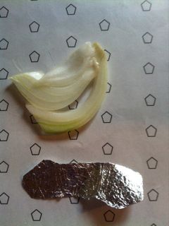 あら、タマネギが?これはずっと前に買ったタマネギが一つ残っていてどこのだかわからない。タマネギってアルミ入りやすいの?気をつけよう。