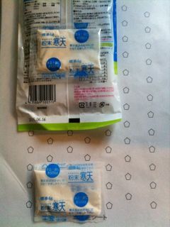 捨てなくてよかった。。なんだ、袋か。べつに粉寒天だからおいしい、とかおいしくない、とかないけれど、水に溶かして冷ましたら固まる。これは食感だ。