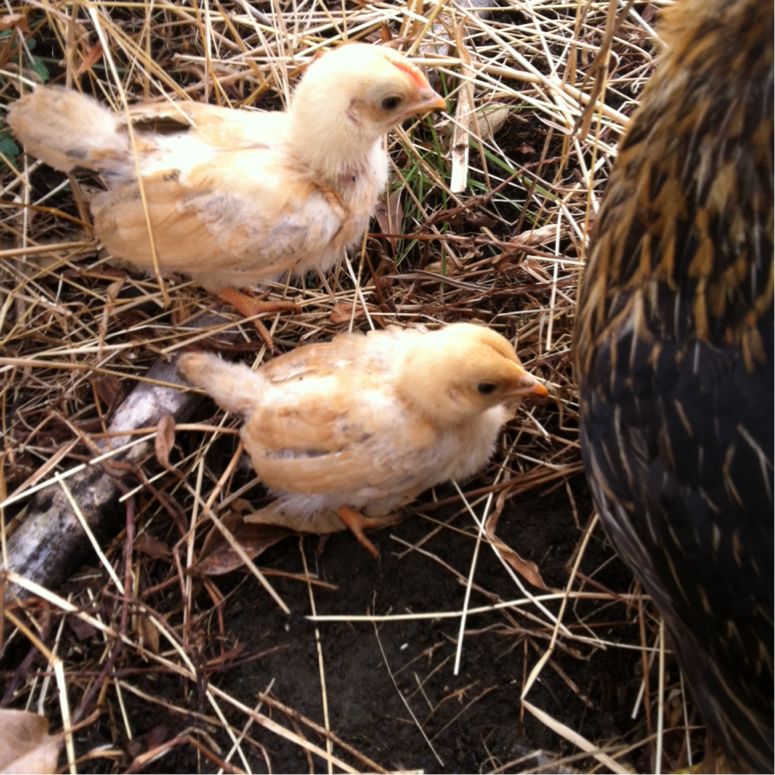 ひよこの時から尾が縦に大きいのが雄鶏。横に広がり小さいのが雌鳥では?と思いみていたら、雄鶏だと思うひよこの頭にはトサカが出てきた。