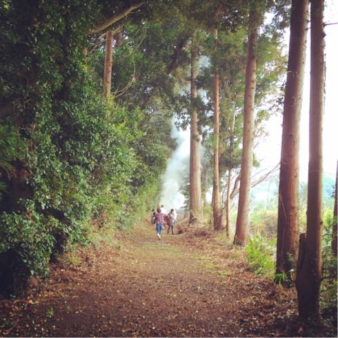 参道は生い茂った木のおかげで燃やせるので集めて燃して