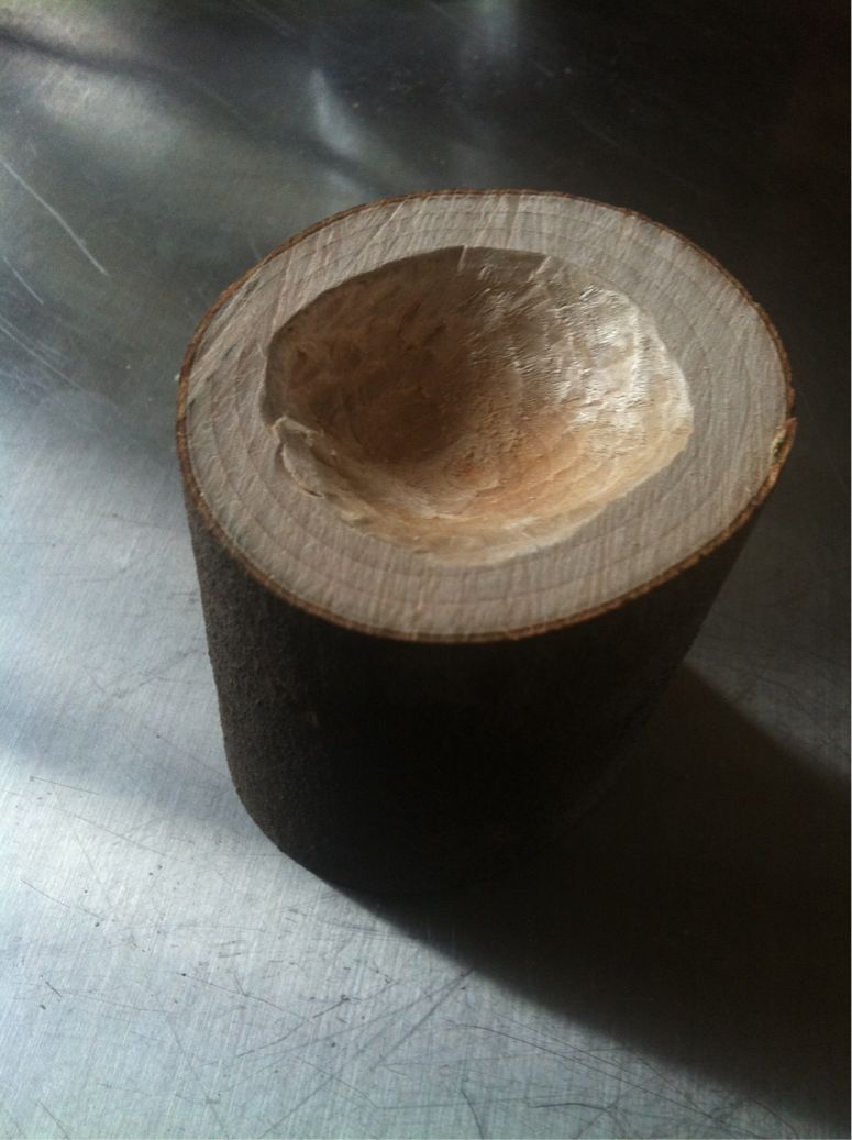 コップにしようともう一つ掘っていたものは外皮に達して光が見えてしまった、、もう使えないので、それはそれで薪にする。かなり硬かったので懸命に削ったのだが、がっかり。