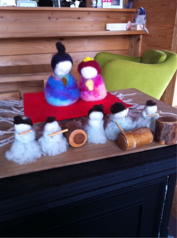 五人囃子の服は藍染の残り汁染め。去年このへんで採れた藍。これもどうなんだろな。