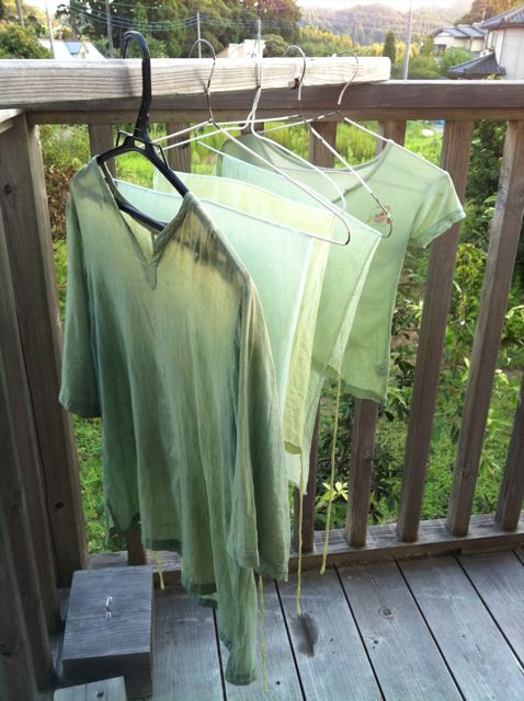 で、サラシやもともと草木染めをしてあったいまは色あせたシャツをつけこみました。