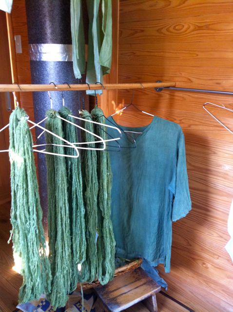 しっかり色がつきました。毛糸はもともとタンポポで染めて黄色だった上に重ねました。