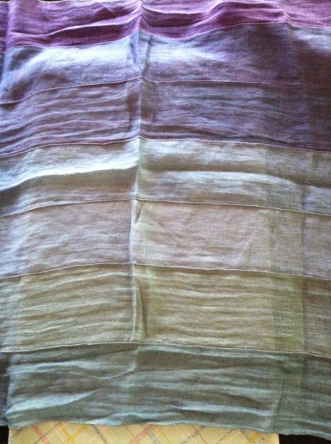 この程度でした。いつも染めの作業は「徒労」に終ることがおおく、作業のわりに効果がみえないのであまり好きではありません。今回もこんな、、、友達のアドバイスは「まずはハンカチ程度のものから」