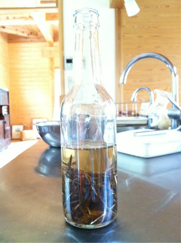 さらには媒染のミョウバンも使い切ったので、錆び釘を出してきて酢水につけてみました。鉄媒染するのにはこれから5日かかるようです。