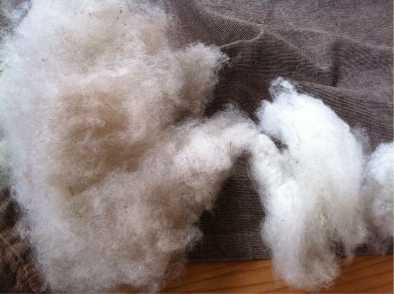 せっせと桑の実で染めた羊毛を漉いております