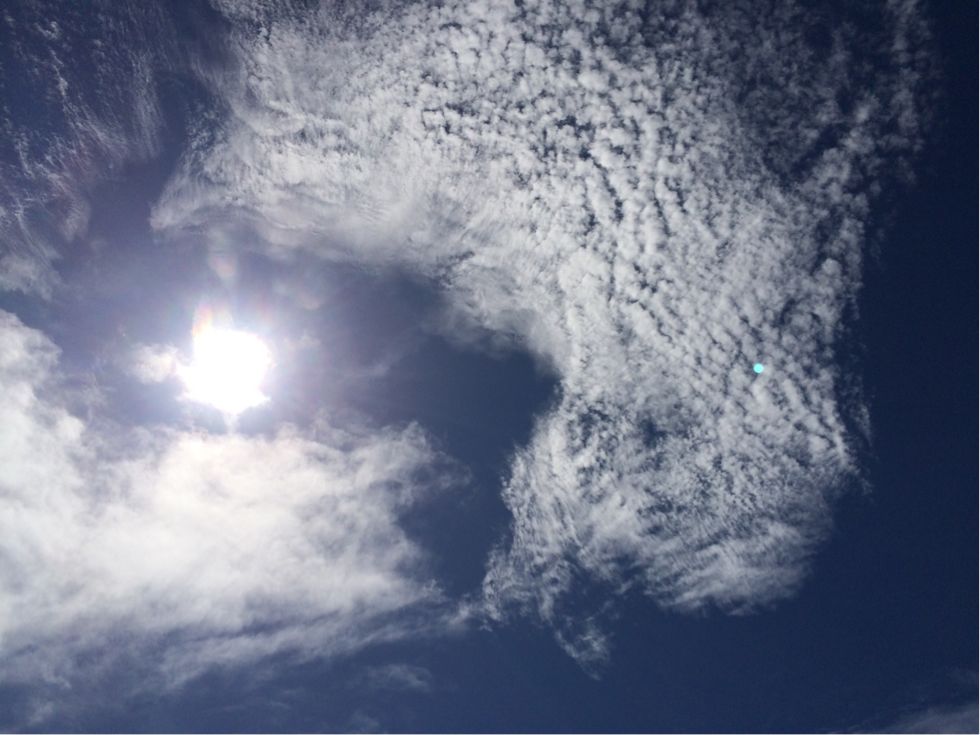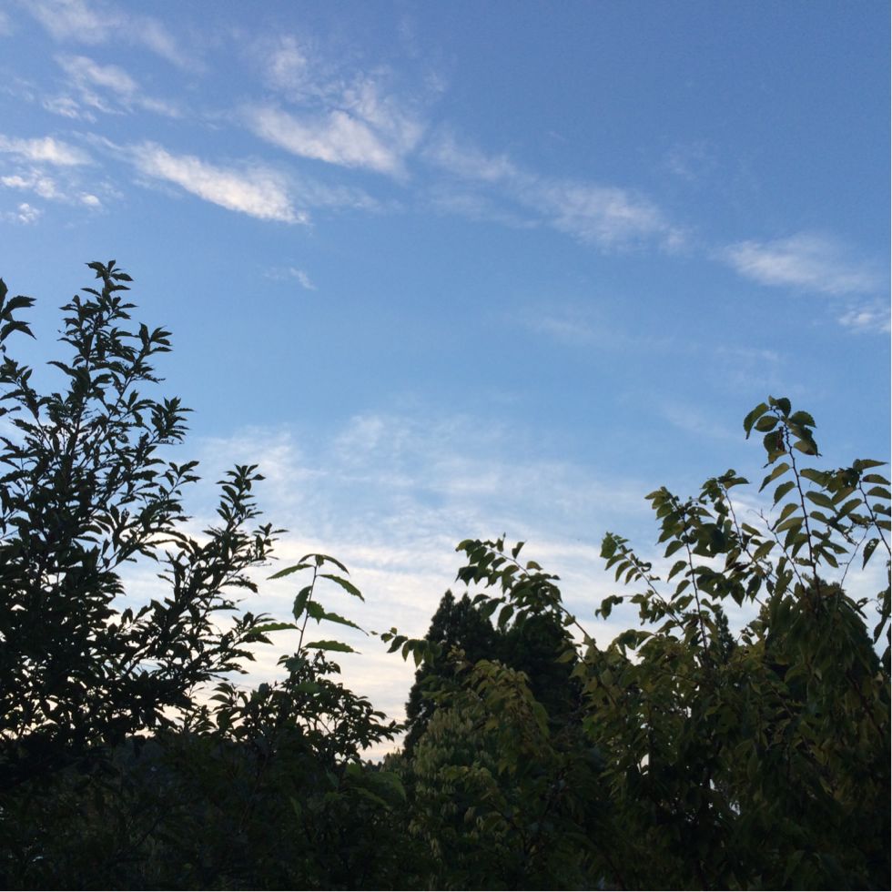 今朝の夜明けはなんてことなくて、灰色から水色になっていくだけだったけど、太陽がでてからの空は賑やか。