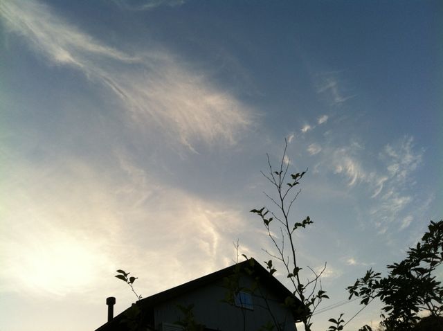 夕方チャボの小屋の戸を閉めにでたら、もう空一面に雲が飛んでいて最高にきれいだった。