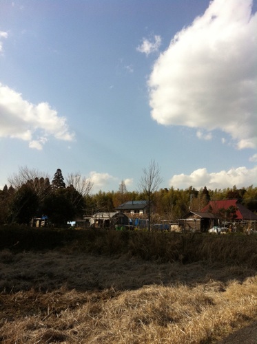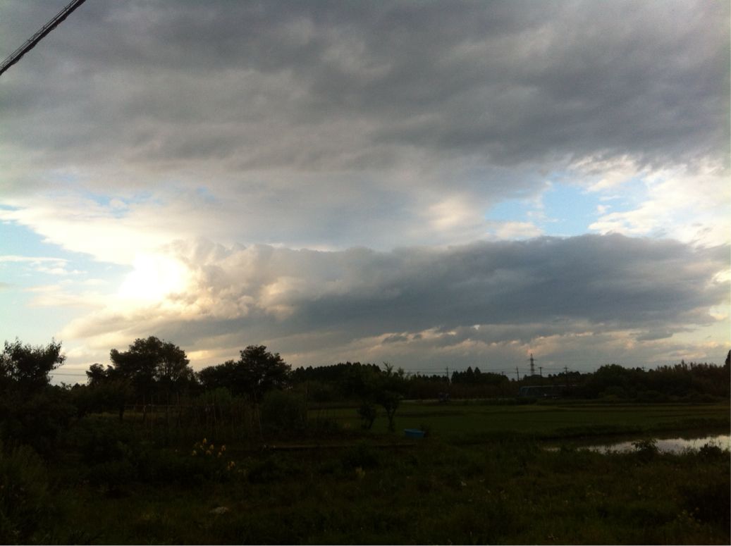 外に子どものお迎えに出ると北空には大きな白い雲。夕日に照らされていました。