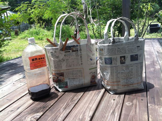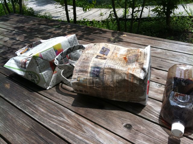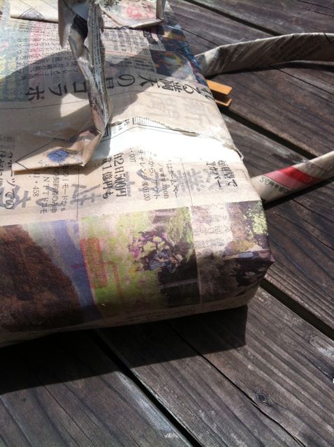一日分の新聞紙でかなり頑丈な紙バックの形ができました。