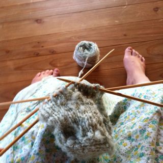 なので編むことに。編んだ方が洗剤使わないし、エコ。時間も短くてすむ。
