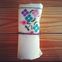ならば袋くらいは用意してあげよう、とクロスステッチの布は私の小学校時代のものを取り出して刺繍してみた。
