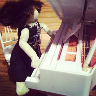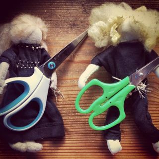 いま娘が大ファンのバンドのメンバーみたいになったのでそのままキーボードの人はそれっぽい腕の位置に縫い付け。