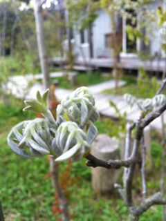エンジュの冬芽はまるくて、幹の黒さと相まってとっても頑な(かたくな)な木に思っていたのだけれど