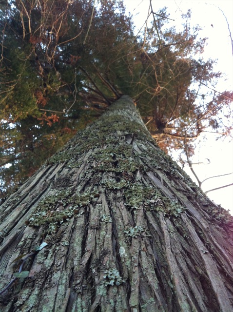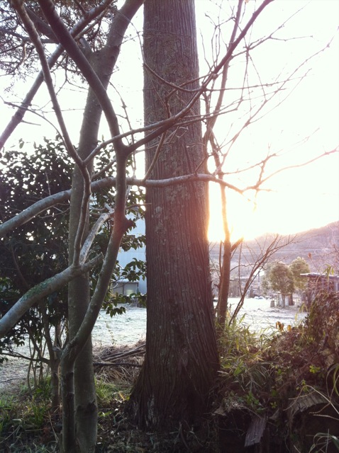 腕にかかえても抱えきれないくらいの太さ。高さは隣の家とくらべても倍はあるからおよそ4階建てくらい。