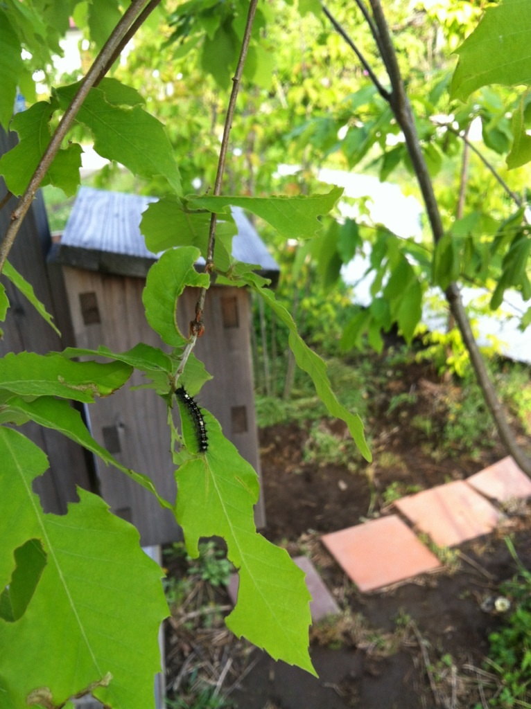 このサイズの毛虫なら、手で潰しても大丈夫なことをこの春発見。見つけたらその場で指で弾く、または潰す。