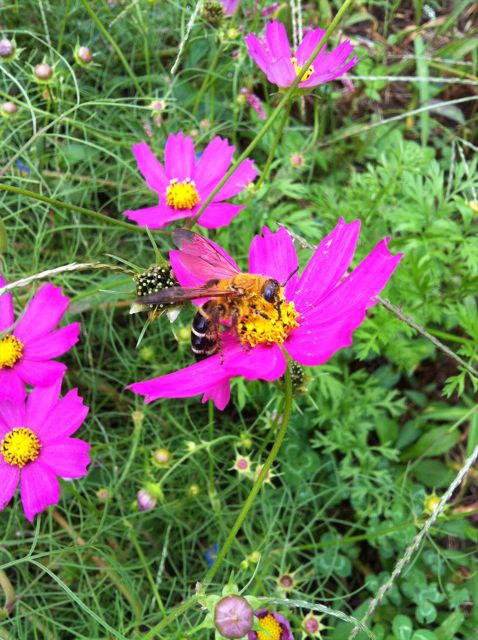 目に鮮やかな緑の影には無数の虫たちが。毛虫もときどき。