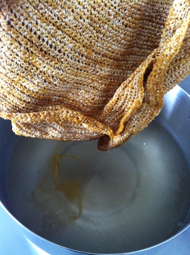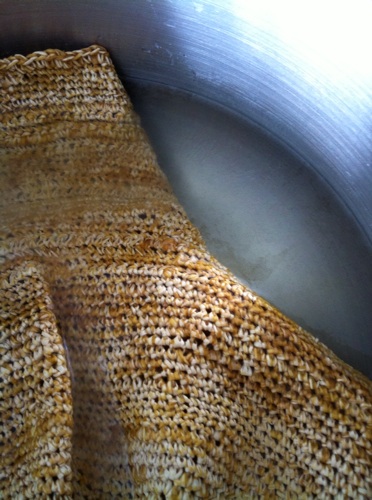 柿渋で染めるか、とも思ったが手持ちの安心やさいに漬けてみた。