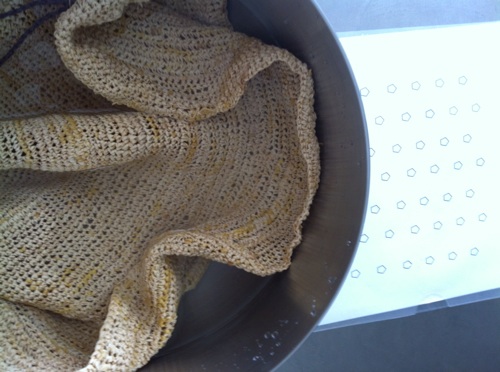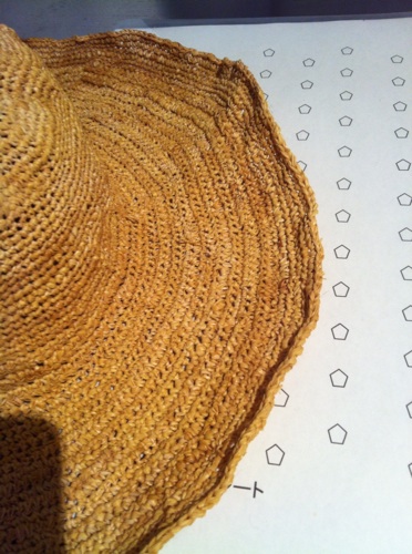 去年編んだラフィアの帽子のツバを出かける前に2、3周広くした。