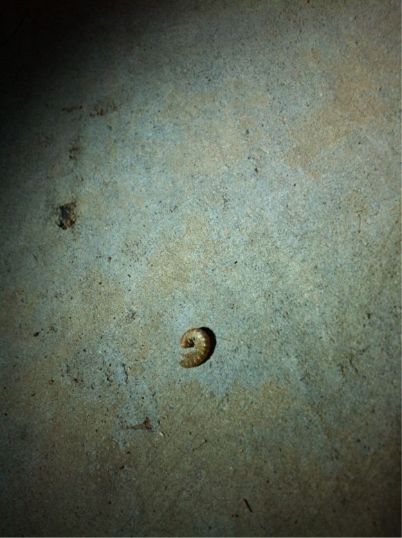 こんなところに芋虫。なんで?どうやちだてきたのか。
