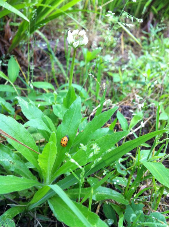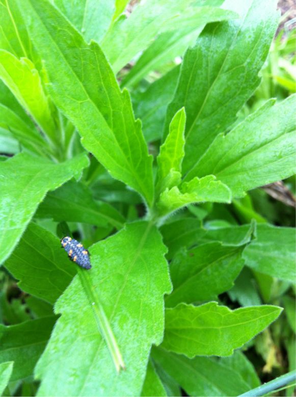 しかし、この時期は多くのセイタカアワダチソウにてんとう虫のサナギがいる。オオバコにもヒメジュオンにもいる。