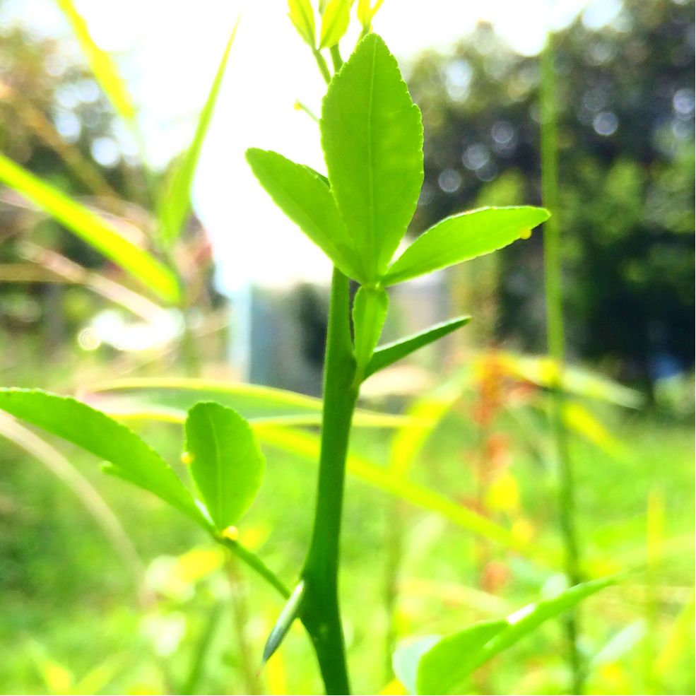 目の前の橙の葉に背中を丸めながら飛んでお尻をつけていた。