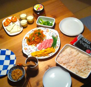 でそうした新時代意識のある彼女にお祝い膳に手巻き寿司。