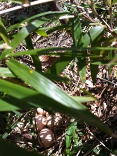 キキもそとで待っている。それでしばらくして立ち去ったあとに茂みをみたら5つの卵があった。