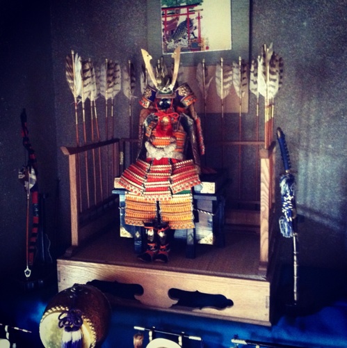 座敷にはあと二年で80年!となる五月人形。この甲冑の中の黒い人、怖かった。