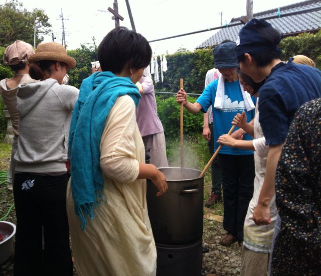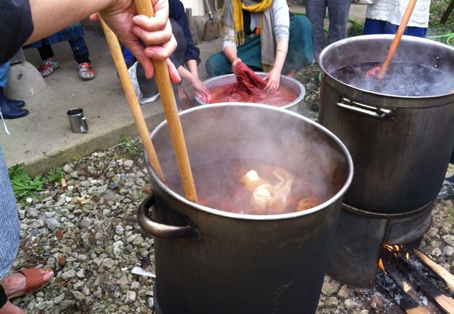 今日の私は琉球藍のシャツに高校の時に買ったジーパンのリメイクスカートでした。
