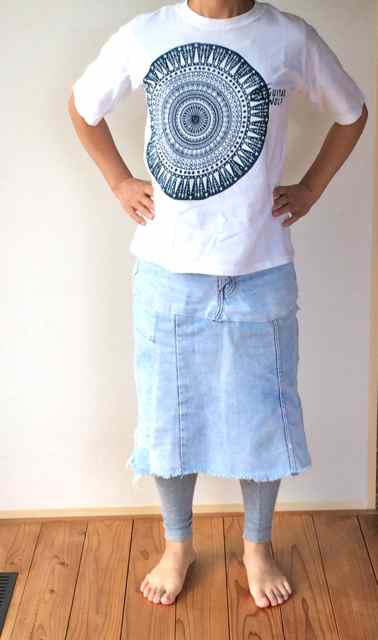 今日の私は琉球藍のシャツに高校の時に買ったジーパンのリメイクスカートでした。