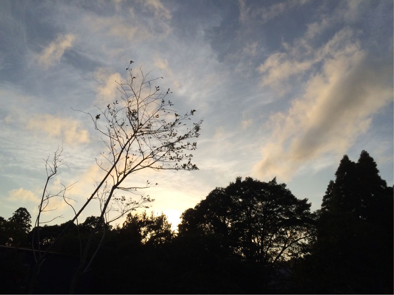 今朝の夜明けはなんてことなくて、灰色から水色になっていくだけだったけど、太陽がでてからの空は賑やか。
