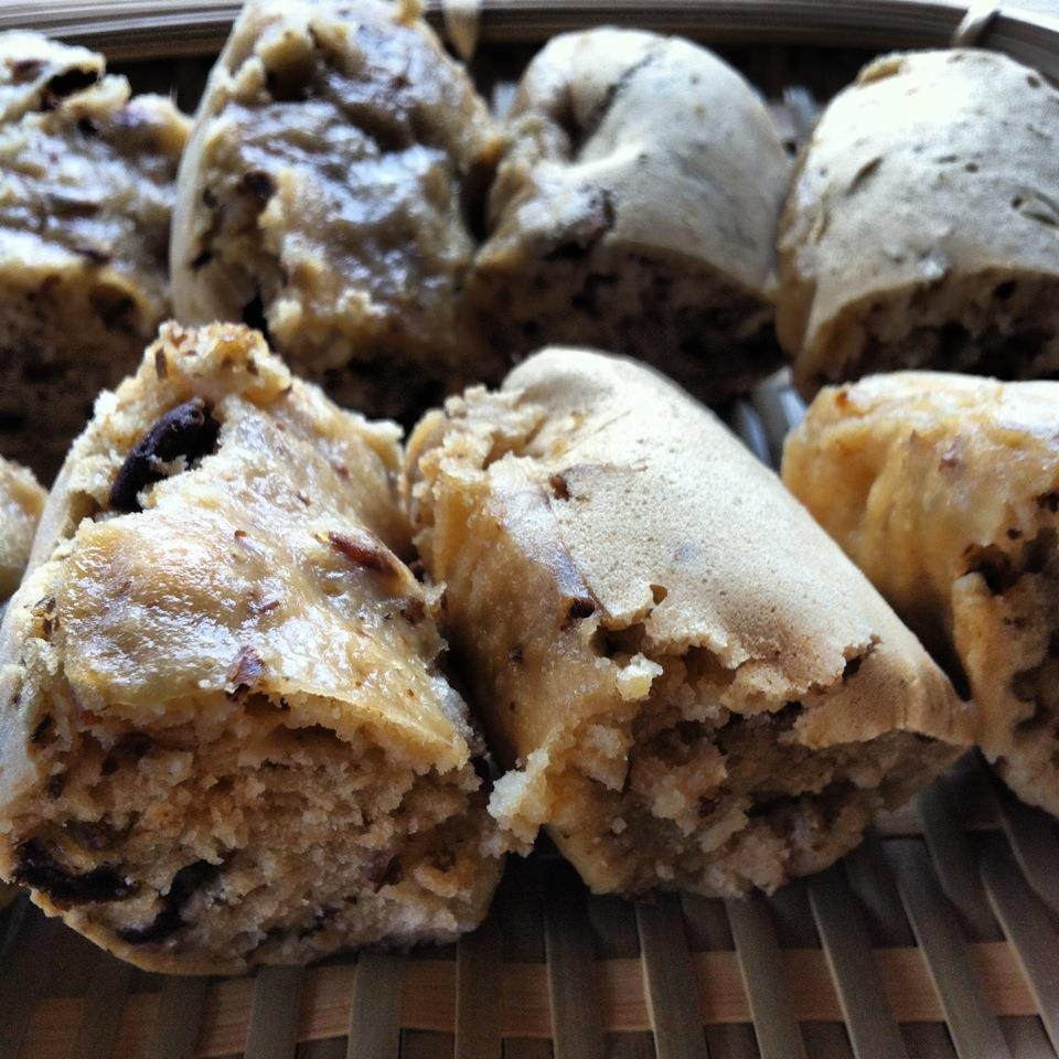 重曹は水分とあわさるとすぐに泡泡するので蒸篭(今回はダッチオーブンにざる)はシュンシュンと沸騰させて用意しておくこと