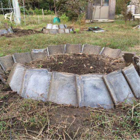 自然農法をしている棚原さんのお話を夏に聞いたが、そうした畑には化学物質の沈着がさながら岩盤のように層になっていて、それを砕かないと水が溜まる、滞るといった話を聞いた。だ、ものだからスコップでその層がありそうなところまで掘り返し、刈り草や枝を入れて土を被せている。