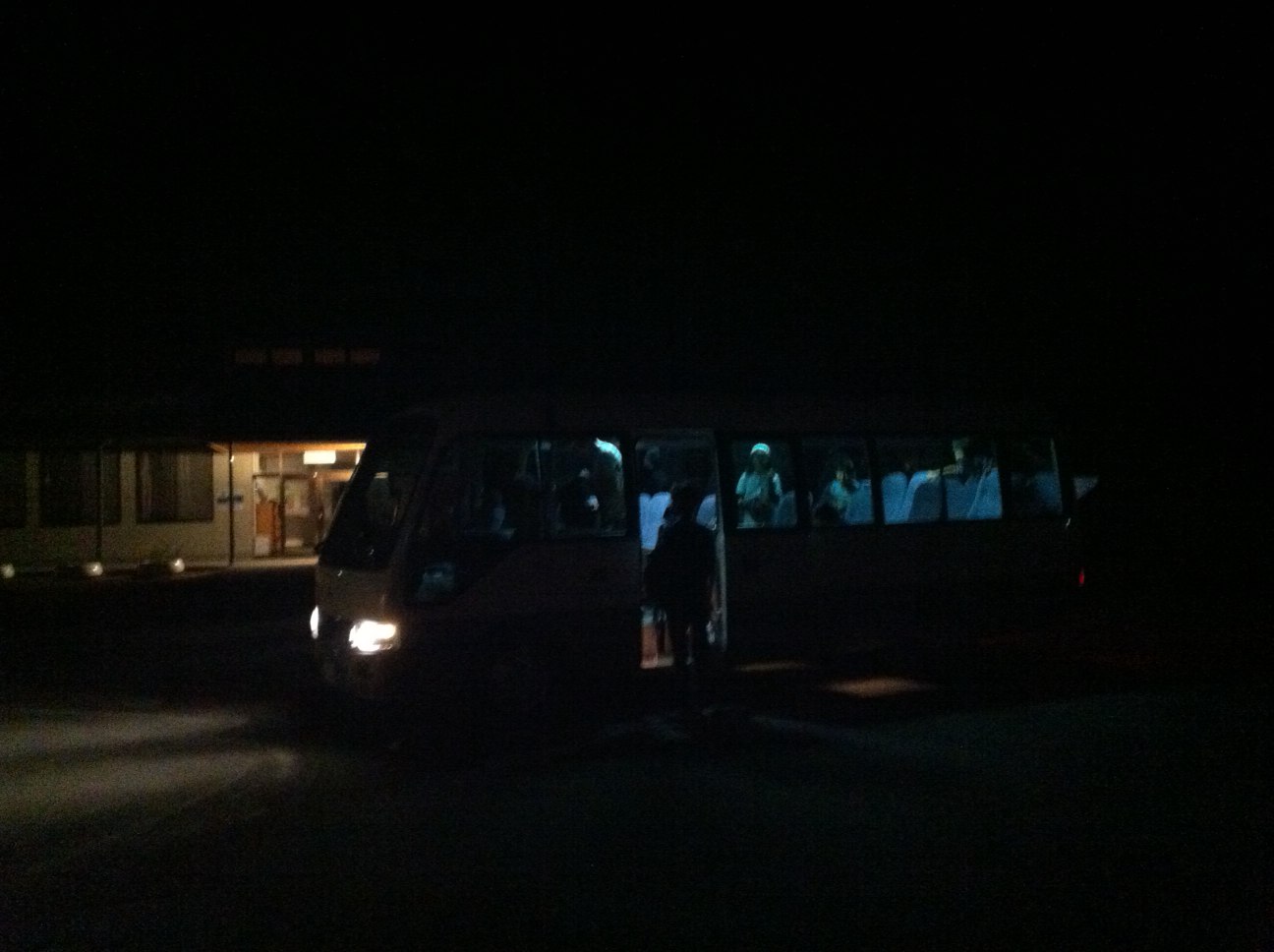金曜日の夜に出発して車内で仮眠。よく眠れなかったって。